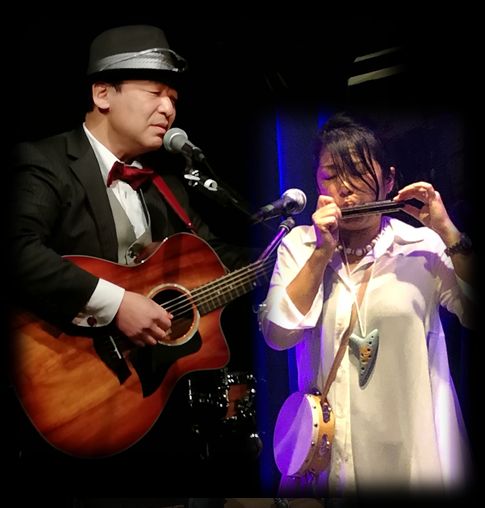 夫のギターにあわせ、妻はオカリナ・鍵ハモ・ハーモニカ・打楽器等色々な楽器で彩を加える演奏に、迫力のダブルボーカル。