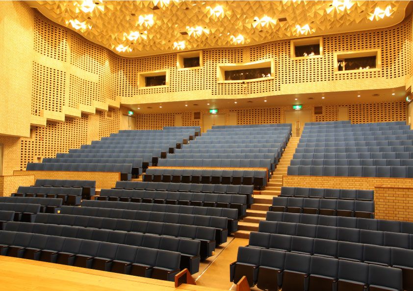 516席のホールと一体利用が可能なハーサル室や多目的室などを備え、使いやすい