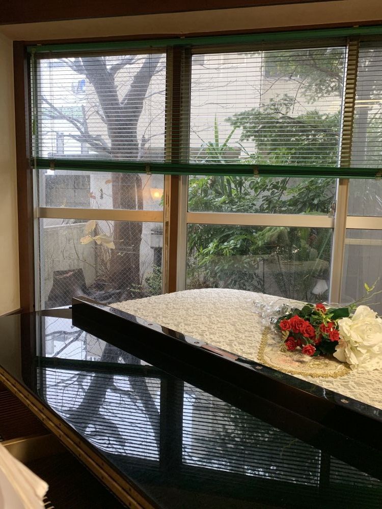 約45名収容可能なスペースにグランドピアノBostonを設置。カフェとしてもご利用いただけます。