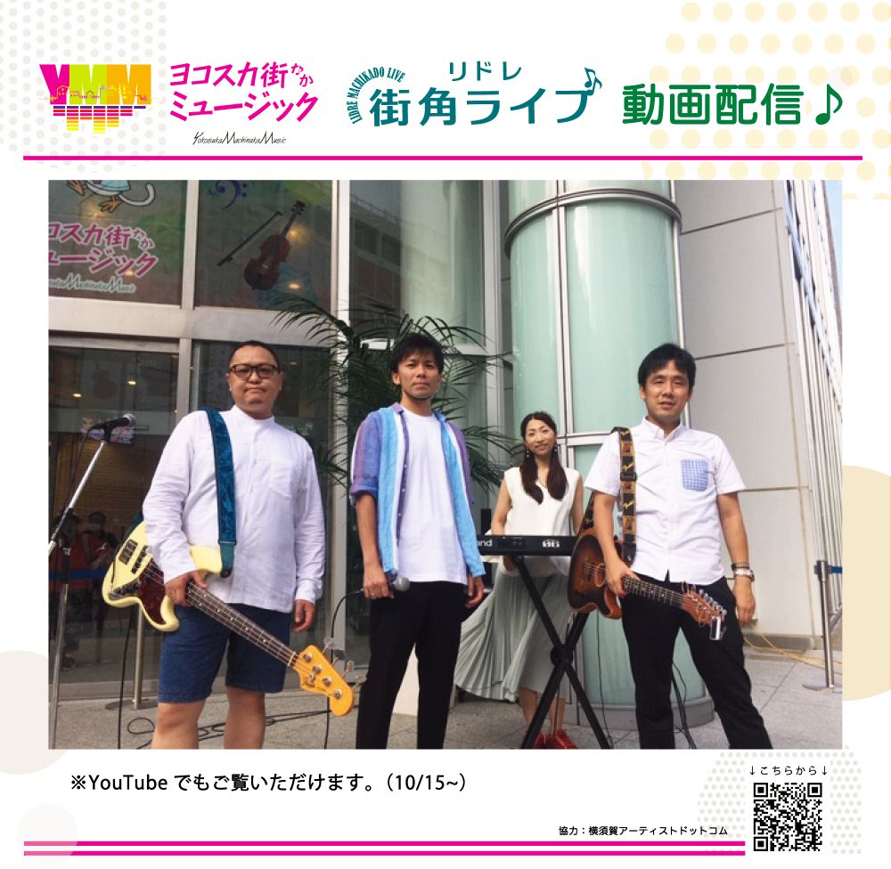 横須賀中央地区に2016年4月にオープンした商業施設「LIDRE横須賀」では、店頭特設ステージで、「リドレ街角ライブ」をはじめ、地元中心にジャンルを問わず、街角が楽しく賑やかになる空間と時間の創出をしています。 10月15日から横須賀・湘南で活躍中のバンド「イチノイー」の出演によるスペシャル映像をYouTubeのほか、リドレ店頭モニターでも公開いたしますので、ぜひご覧ください。